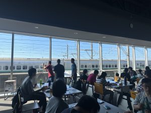 窓の外を列車が通る度に「あっ!はやぶさ」「こまち!」と電車好きのメンバーは箸を持つ手が止まっていました。
